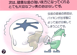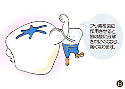 歯質を強化し、ムシ歯を予防する効果の高さは、WHO(世界保健機構)、FDI(国際歯科連盟)などで認められ、その使用が推奨されています。世界では120カ国でいろいろな方法でフッ素がムシ歯予防に利用されています。